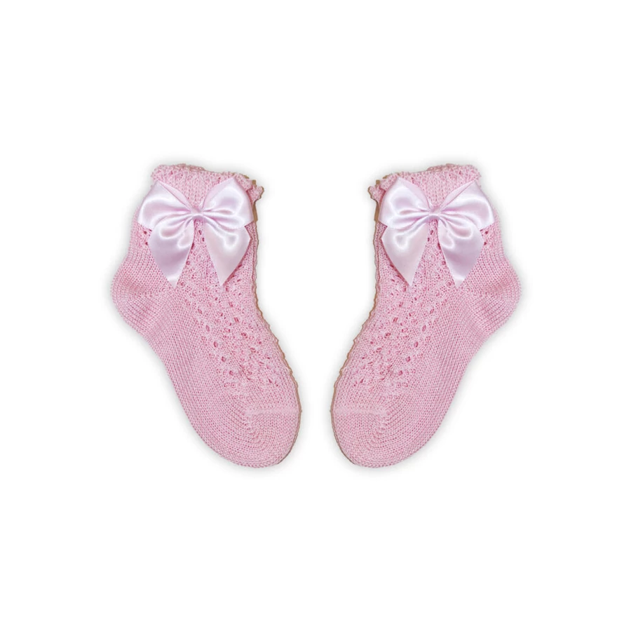 100% pamut kislány baba bokazokni horgolt felsőrésszel - masni díszítéssel - rózsaszín - 13-14