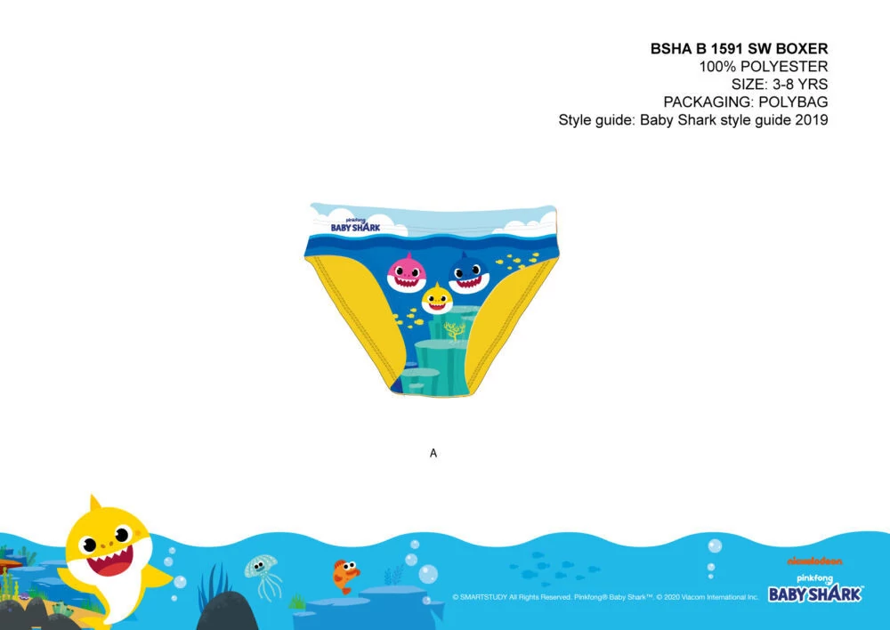Fürdő alsó kisfiúknak Baby Shark mintával, a nyár elengedhetetlen kelléke. Kellemes viselet strandoláshoz, vízparti időtöltéshez.