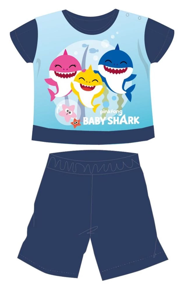 Baby Shark nyári jersey pizsama kisfiúknak 100% pamut alapanyagból, gombos vállrésszel. Kényelmes, bőrbarát viselet. A termék díszdobozban kapható.