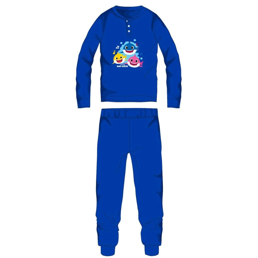 Baby Shark téli interlock pizsama gyerekeknek 100% pamut alapanyagból. Kényelmes bőrbarát viselet. Gombos nyakkialakítással, gumírozott derékrésszel, egyenes, szűkített szárral, Baby Shark mintával. Díszdobozban szállítjuk.