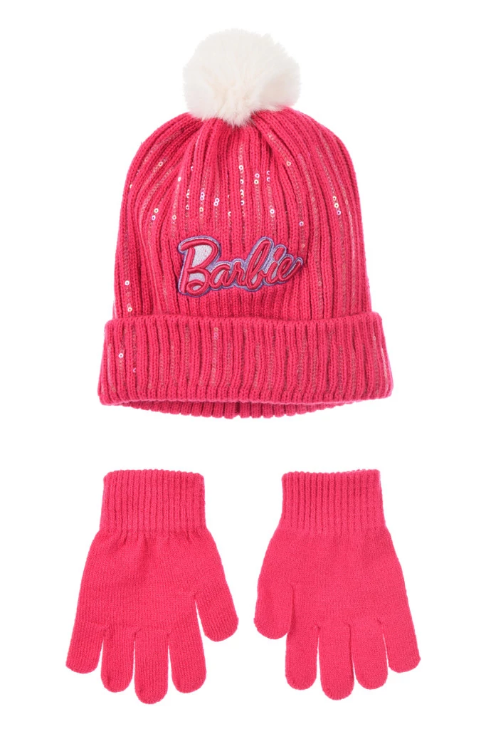 Barbie flitteres gyerek sapka + kesztyű szett
