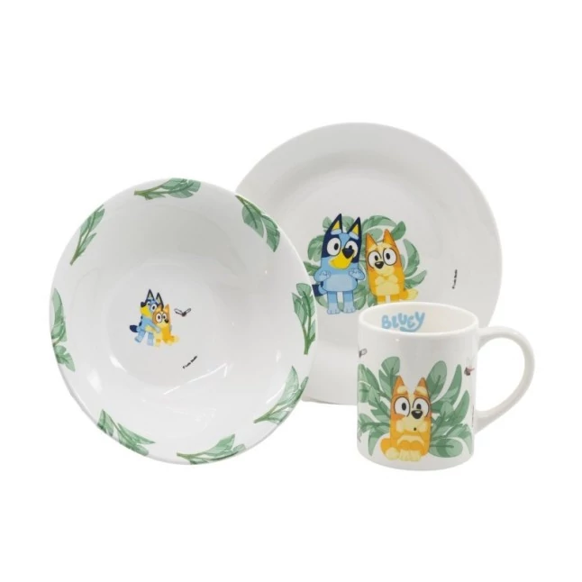 Bluey 3 részes kerámia étkészlet (lapostányér, mélytányér, bögre)