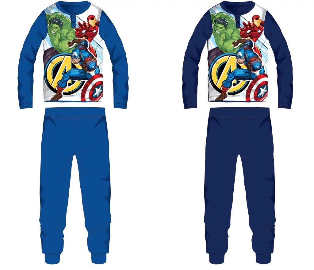100% pamut alapanyagból készült jersey pizsama gyerekeknek Bosszúállók mintával. Bőrbarát, kellemes viselet.