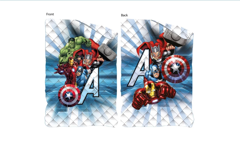 Vastag paplan mely ágytakaróként is használható, mindkét oldalán Bosszúállók mintával vidám színekben. Mérete: 170 x 260 cm.