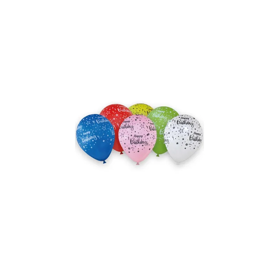 Colorful Happy Birthday léggömb, lufi 6 db-os