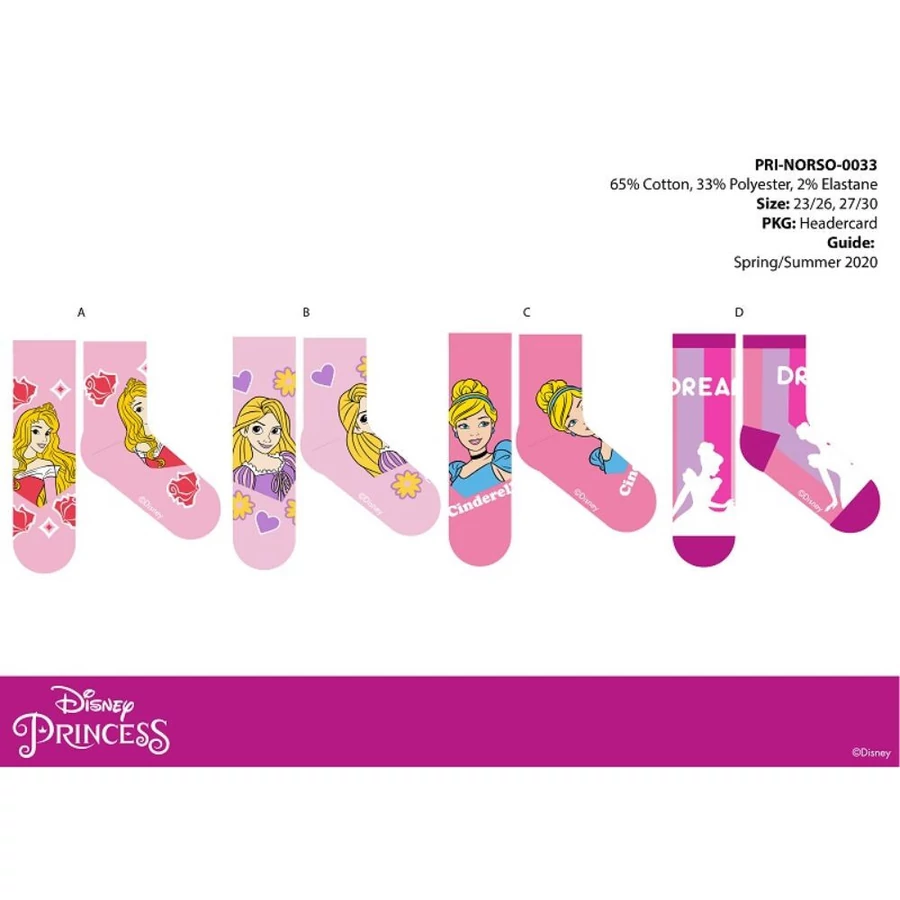 Kislány normál zokni 4 pár/csomag kiszerelésben, Hercegnők motívummal, különböző színekben.