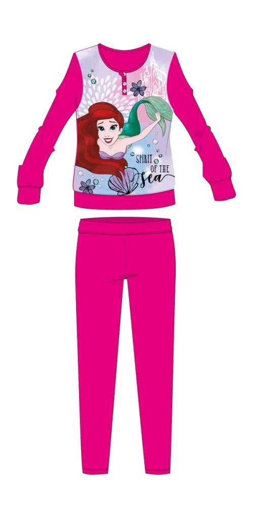 Disney Hercegnők téli interlock pizsama gyerekeknek 100% pamut alapanyagból. Kényelmes bőrbarát viselet. Gombos nyakkialakítással, gumírozott derékrésszel, egyenes, szűkített szárral, Hercegnők mintával. Díszdobozban szállítjuk.