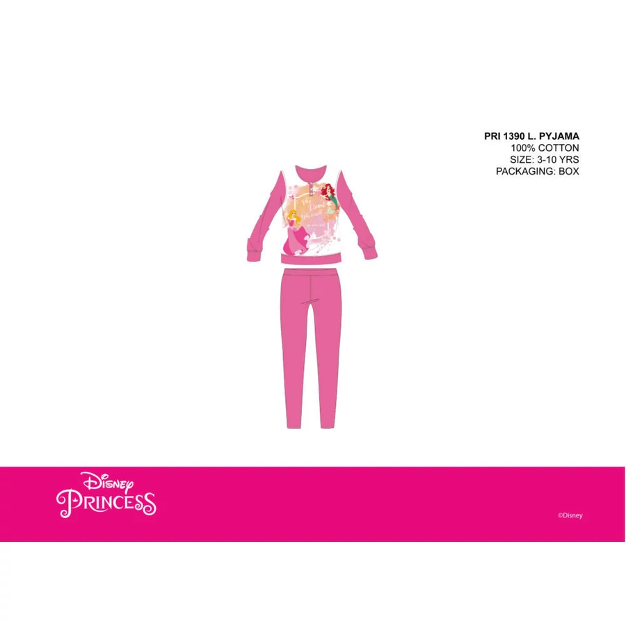 Disney Hercegnők vékony pamut gyerek pizsama - jersey pizsama - sötétrózsaszín - 110