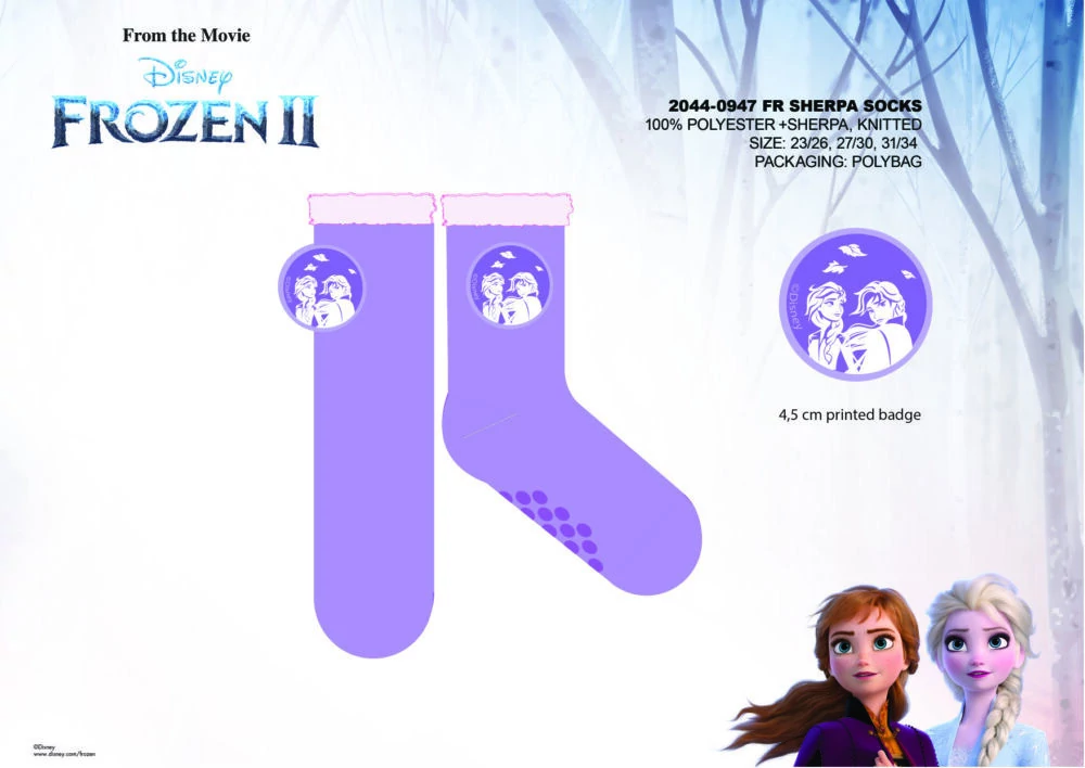 Disney Jégvarázs csúszásgátlós meleg téli zokni gyerekeknek - sherpa zokni - lila - 27-30