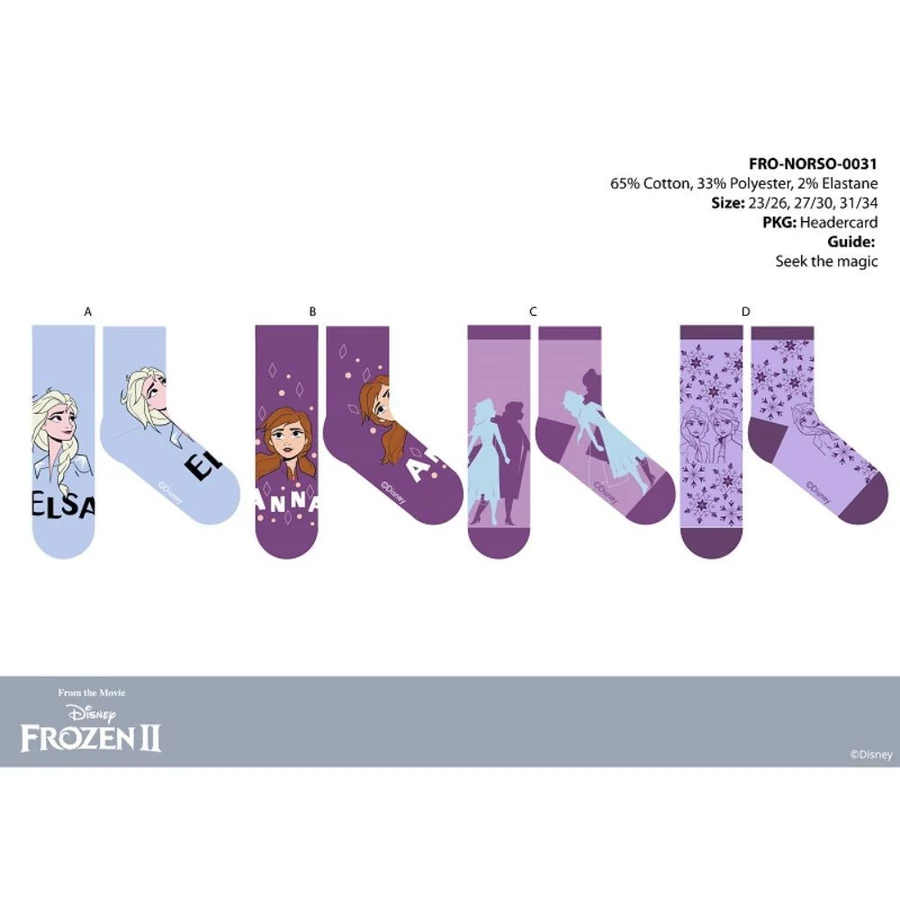 Kislány normál zokni 4 pár/csomag kiszerelésben, Jégvarázs motívummal, különböző színekben.
