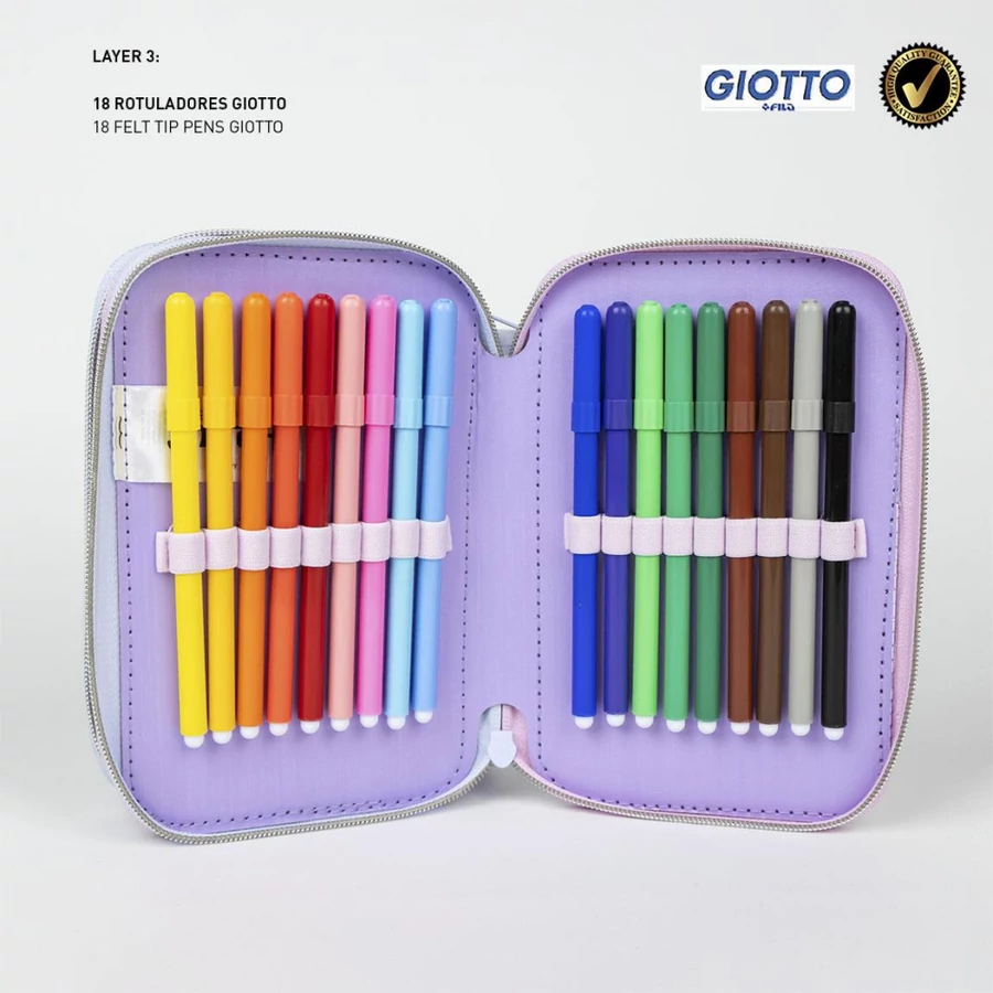 Kiváló minőségű olasz GIOTTO ceruzákkal és filctollakkal töltött tolltartó!