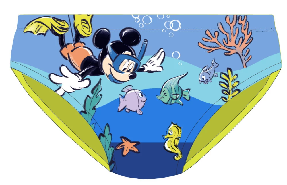 Fürdő alsó babáknak Disney Mickey egér mintával, a nyár elengedhetetlen kelléke. Kellemes viselet strandoláshoz, vízparti időtöltéshez.