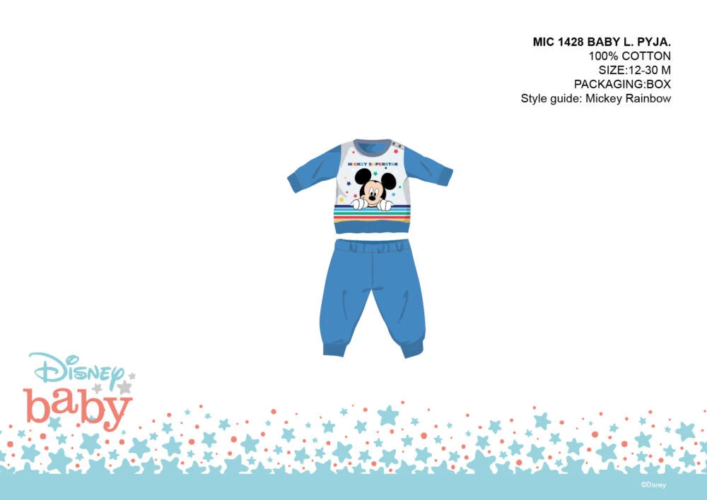 Disney Mickey egér jersey pizsama kisfiúknak 100% pamut alapanyagból. Kényelmes bőrbarát viselet. A termék díszdobozban kapható.