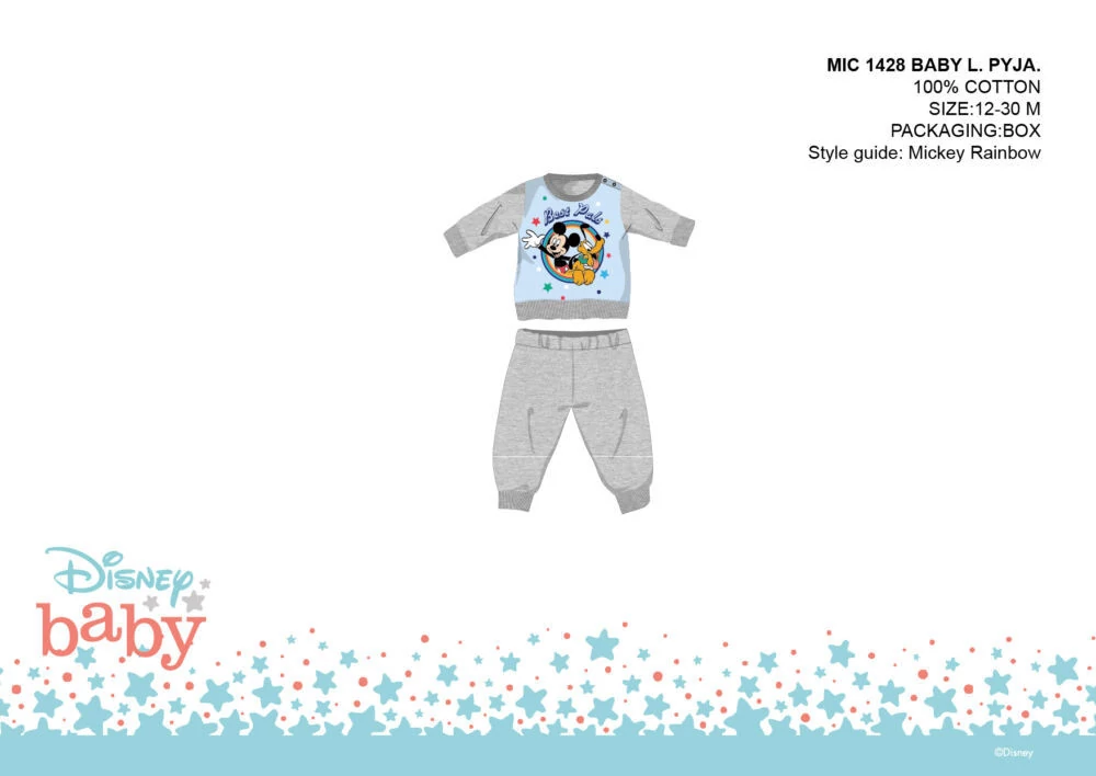 Disney Mickey egér baba pizsama - jersey pamut pizsama - szürke - 80