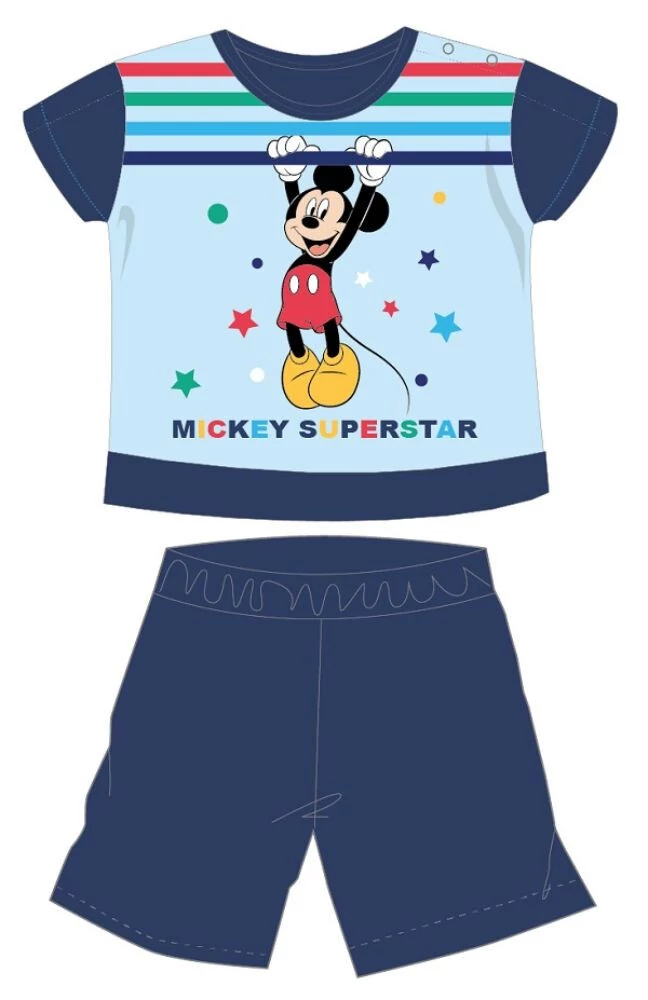 Disney Mickey egér nyári jersey pizsama kisfiúknak 100% pamut alapanyagból, gombos vállrésszel. Kényelmes, bőrbarát viselet. A termék díszdobozban kapható.