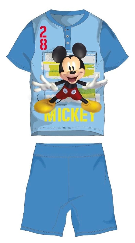 Disney Mickey egér nyári jersey pizsama kisfiúknak 100% pamut alapanyagból, gombos nyakrésszel. Kényelmes, bőrbarát viselet. A termék díszdobozban kapható.