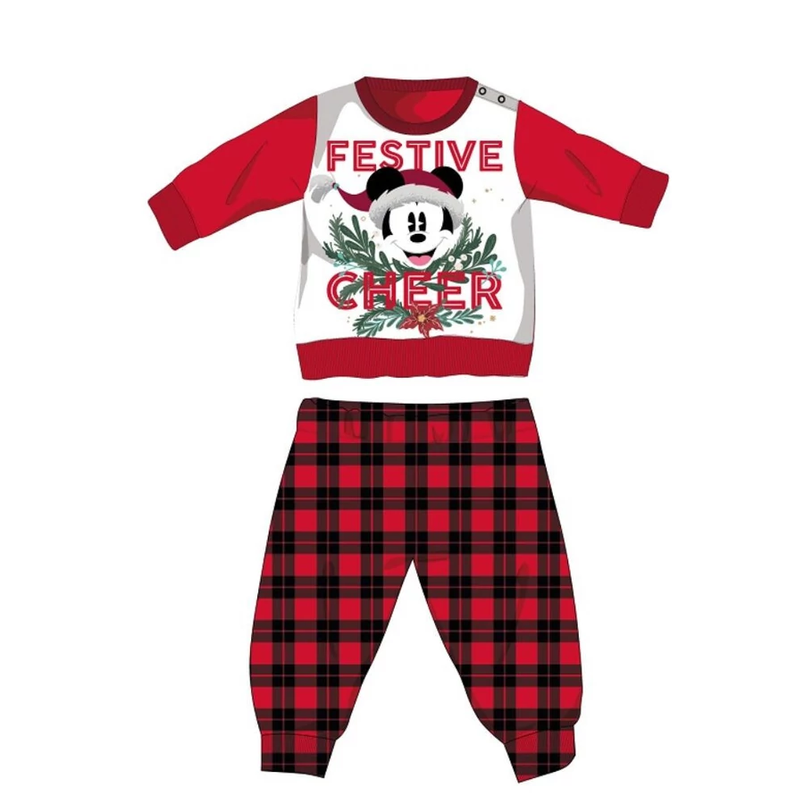 Disney Mickey egér téli vastag karácsonyi baba pizsama - pamut flanel pizsama - piros-fekete - 92