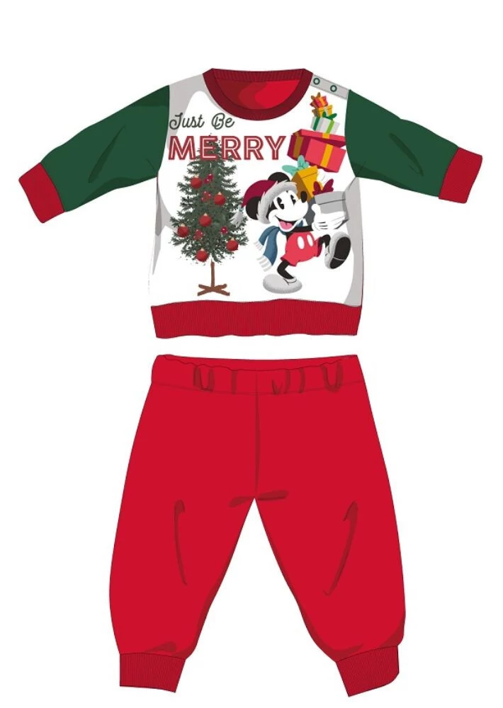 Disney Mickey egér téli vastag karácsonyi baba pizsama - pamut flanel pizsama - piros-zöld - 80
