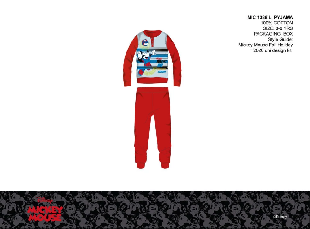 Disney Mickey egér vékony pamut gyerek pizsama - jersey pizsama - piros - 104