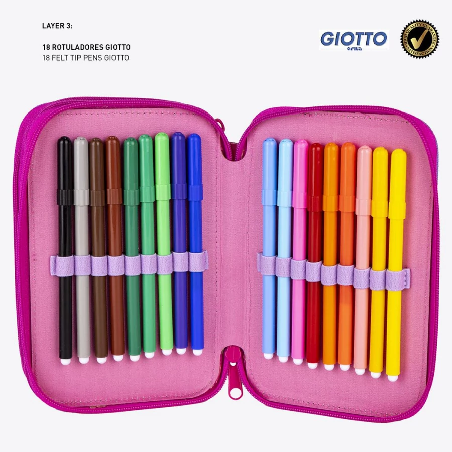 Kiváló minőségű olasz GIOTTO ceruzákkal és filctollakkal töltött tolltartó!