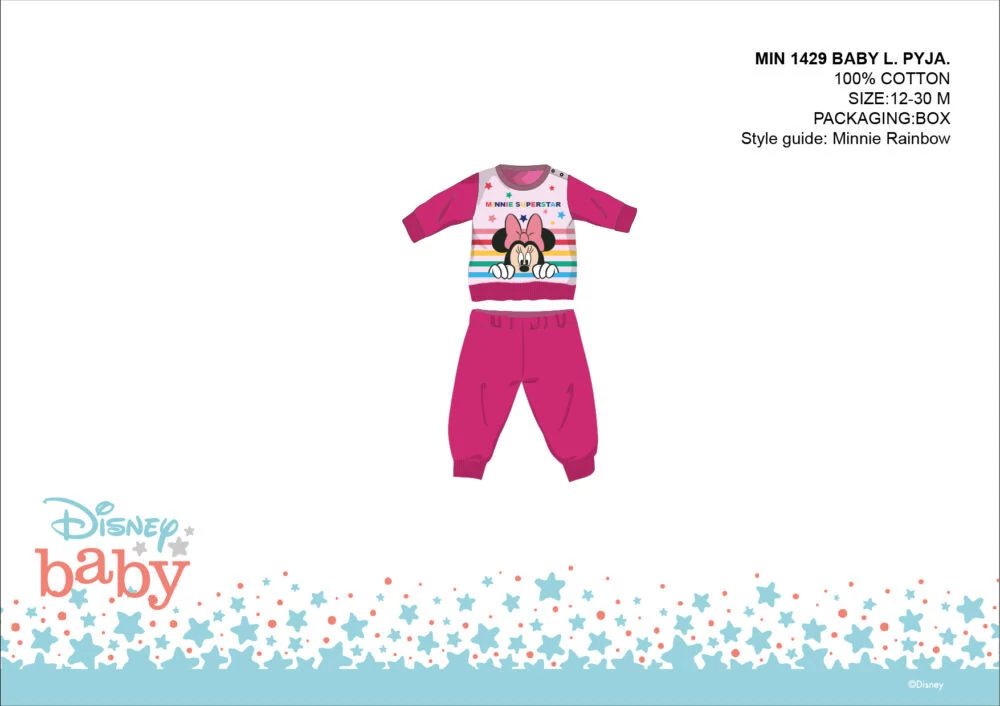 Disney Minnie egér jersey pizsama kislányoknak 100% pamut alapanyagból. Kényelmes bőrbarát viselet. A termék díszdobozban kapható.