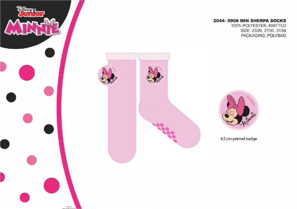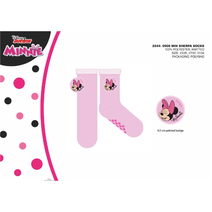 Disney Minnie egér csúszásgátlós meleg téli zokni gyerekeknek - sherpa zokni - világosrózsaszín - 31-34