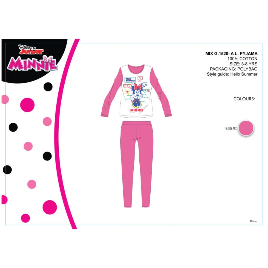 Disney Minnie egér gyerek jersey pizsama - pamut pizsama -rózsaszín - 98