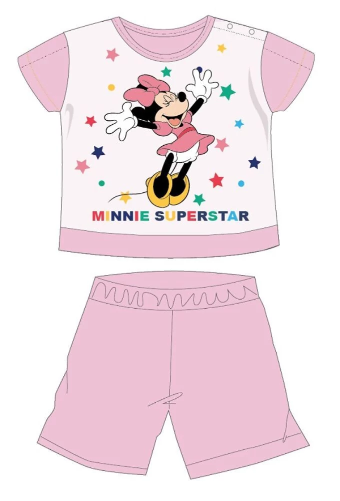 Disney Minnie egér nyári rövid ujjú baba pizsama - pamut jersey pizsama - Minnie Superstar felirattal - világosrózsaszín - 92