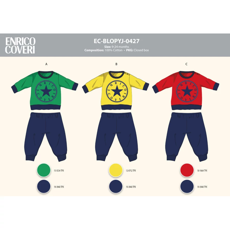 Enrico Coveri hosszú vékony baba pizsama - 100% pamut pizsama - zöld-sötétkék - 92