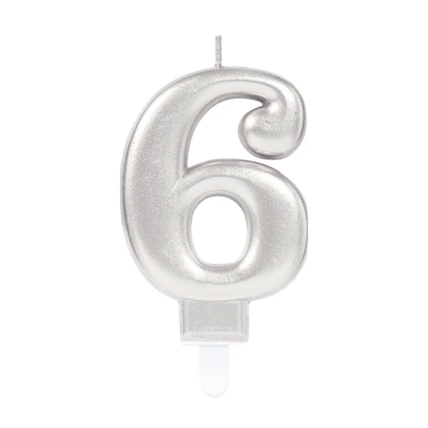 Silver Metallic, Ezüst számgyertya, tortagyertya 6-os