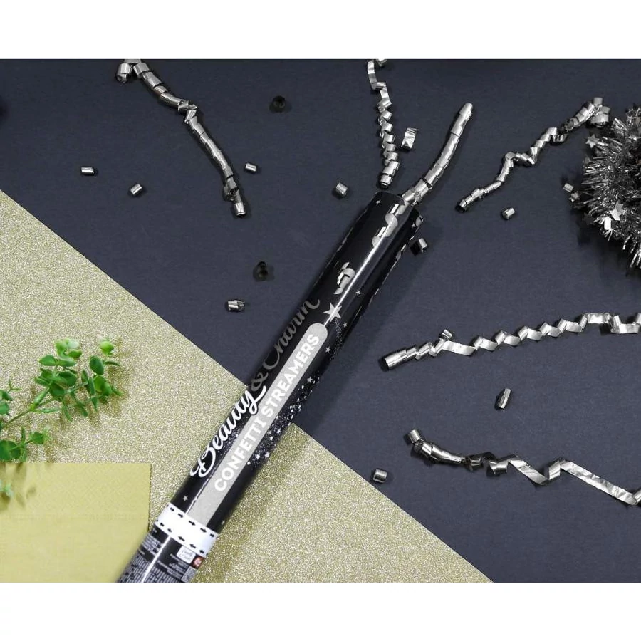 Ezüst Streamers konfetti kilövő 40 cm