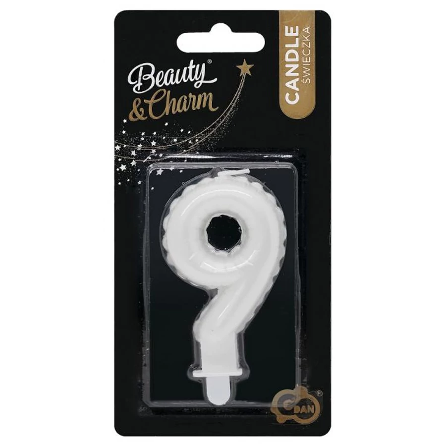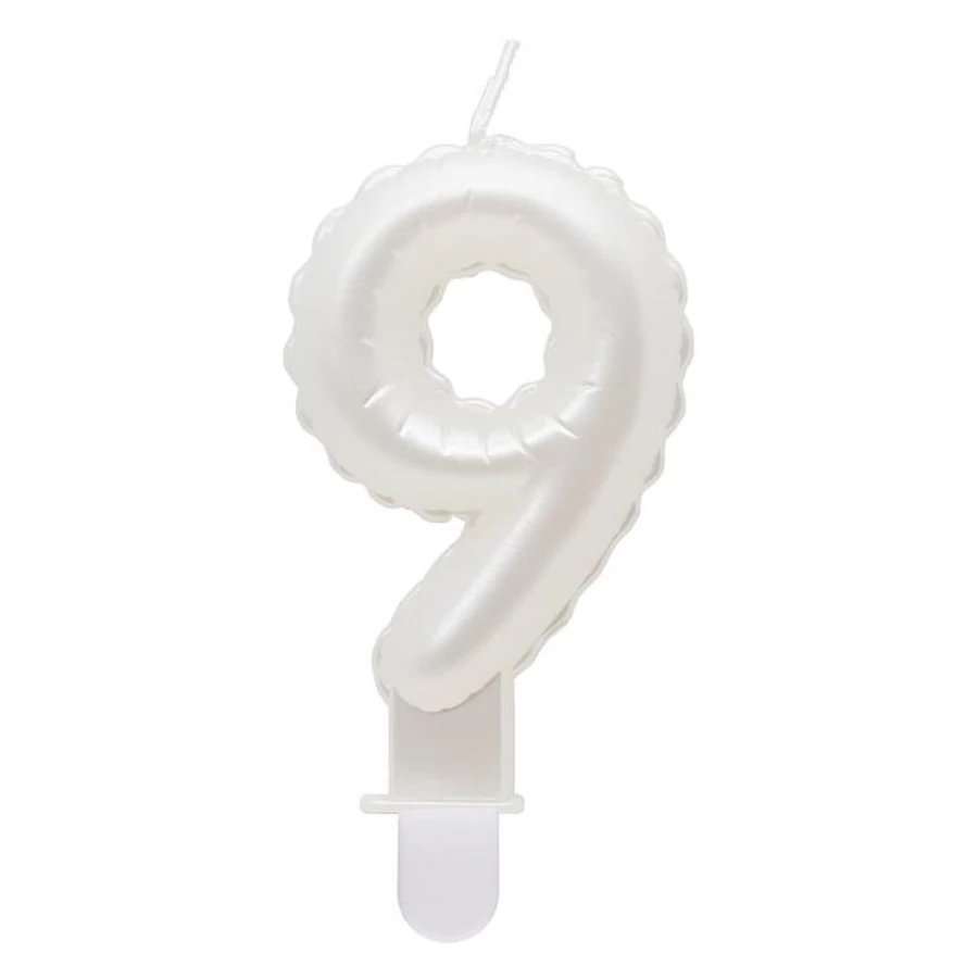 Fehér számgyertya, tortagyertya 9-es