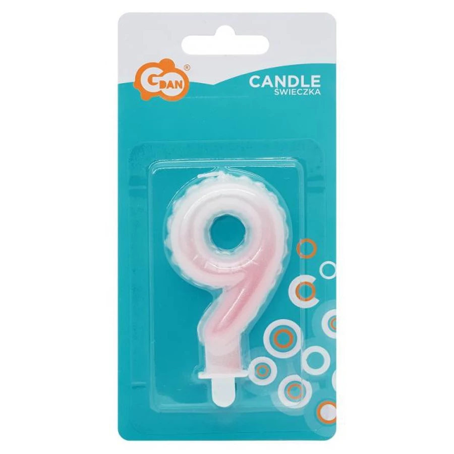 Fehér-Rózsaszín számgyertya, tortagyertya 9-es