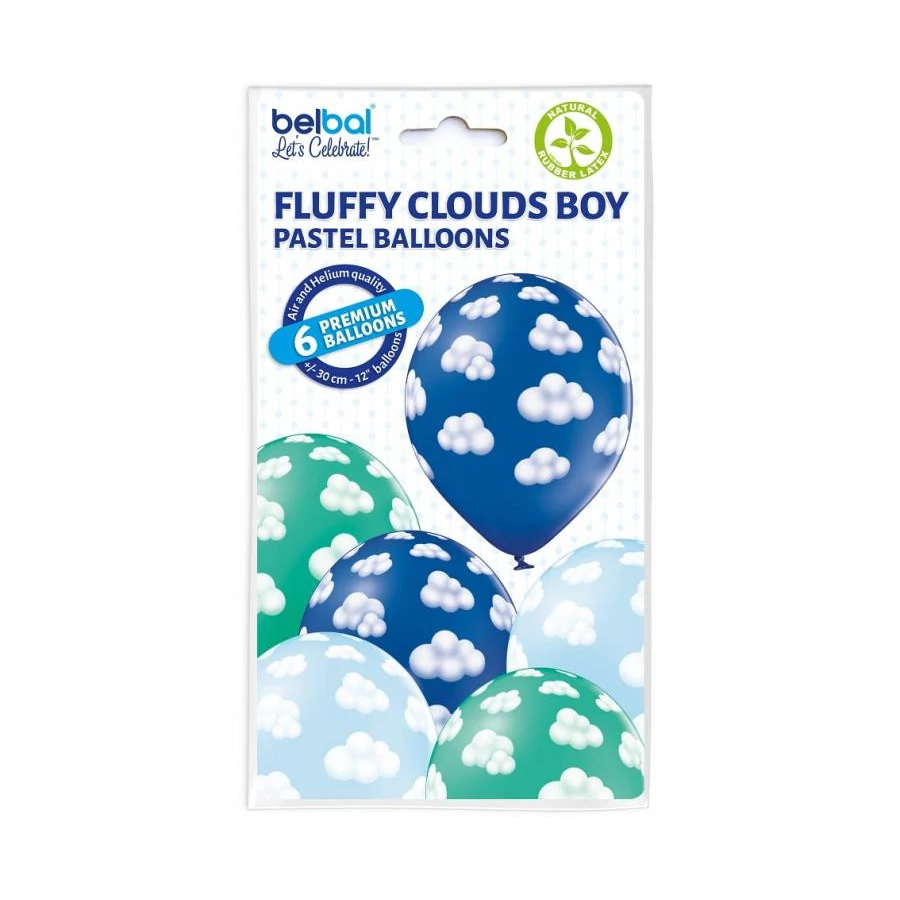 Fluffy Clouds Boy, Felhő léggömb, lufi 6 db-os 12 inch (30cm)