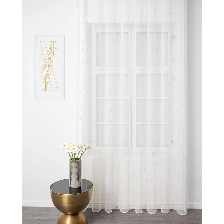 Ecrü színben arany csíkozással 175 cm magas fényáteresztő függöny.