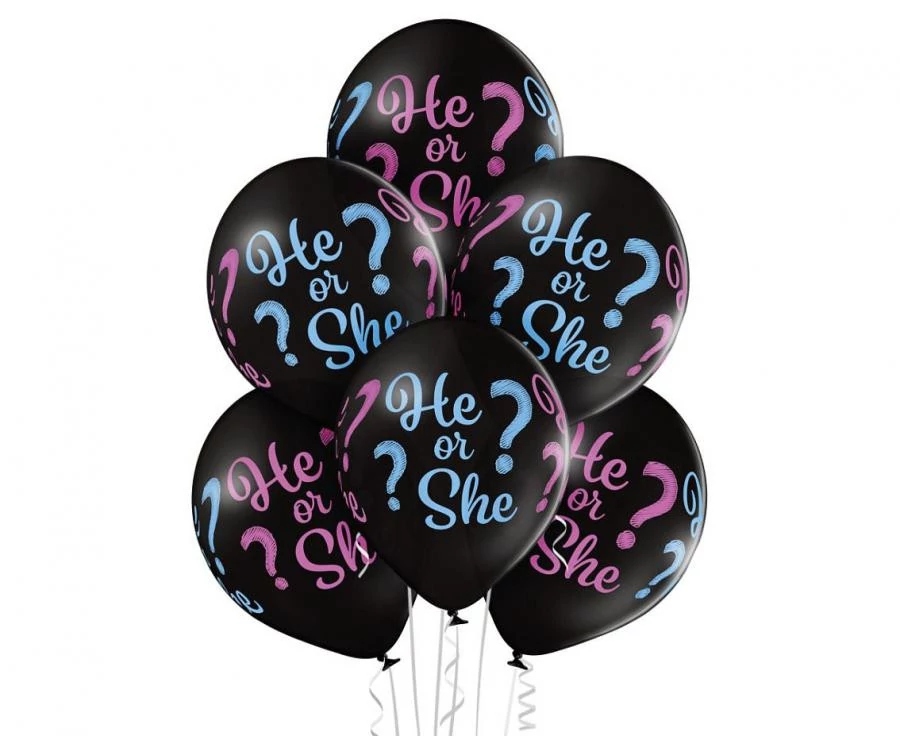 He or She, fiú vagy Lány léggömb, lufi 6 db-os 12 inch (30cm)