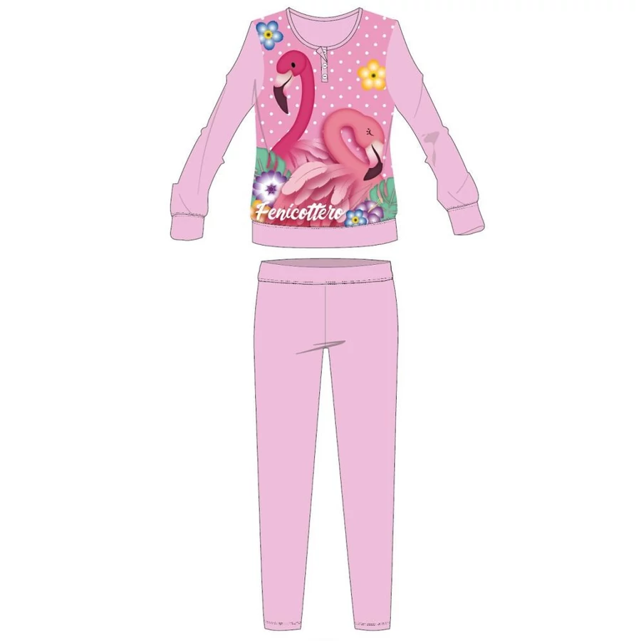 Flamingó téli vastag gyerek pizsama - pamut flanel pizsama - világosrózsaszín - 122