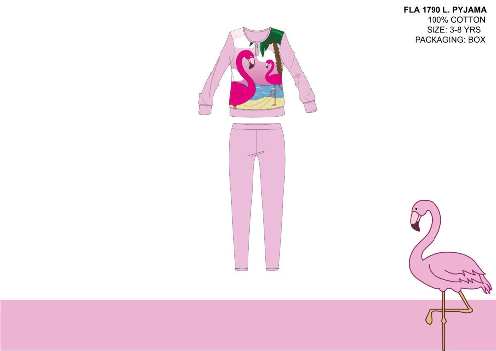 Flamingó vékony pamut gyerek pizsama - jersey pizsama - világosrózsaszín - 122