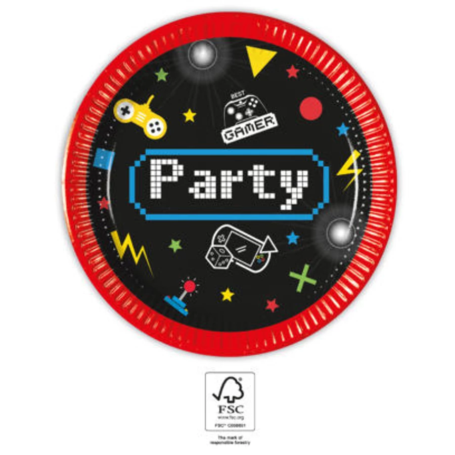 Gaming Party papírtányér 8 db-os 20 cm