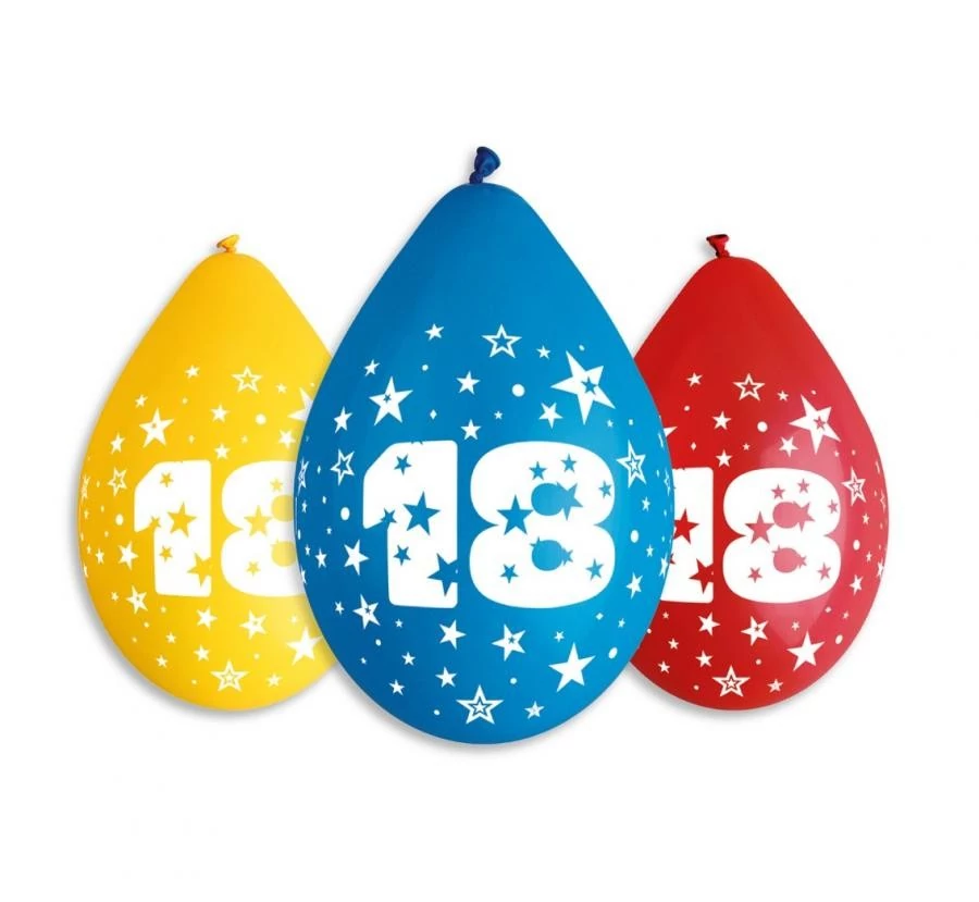 Happy Birthday 18 függő léggömb, lufi 5 db-os 12 inch (30 cm)