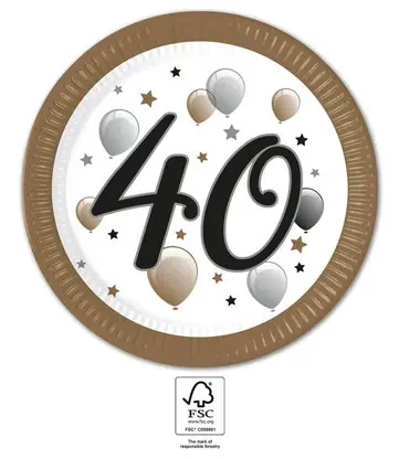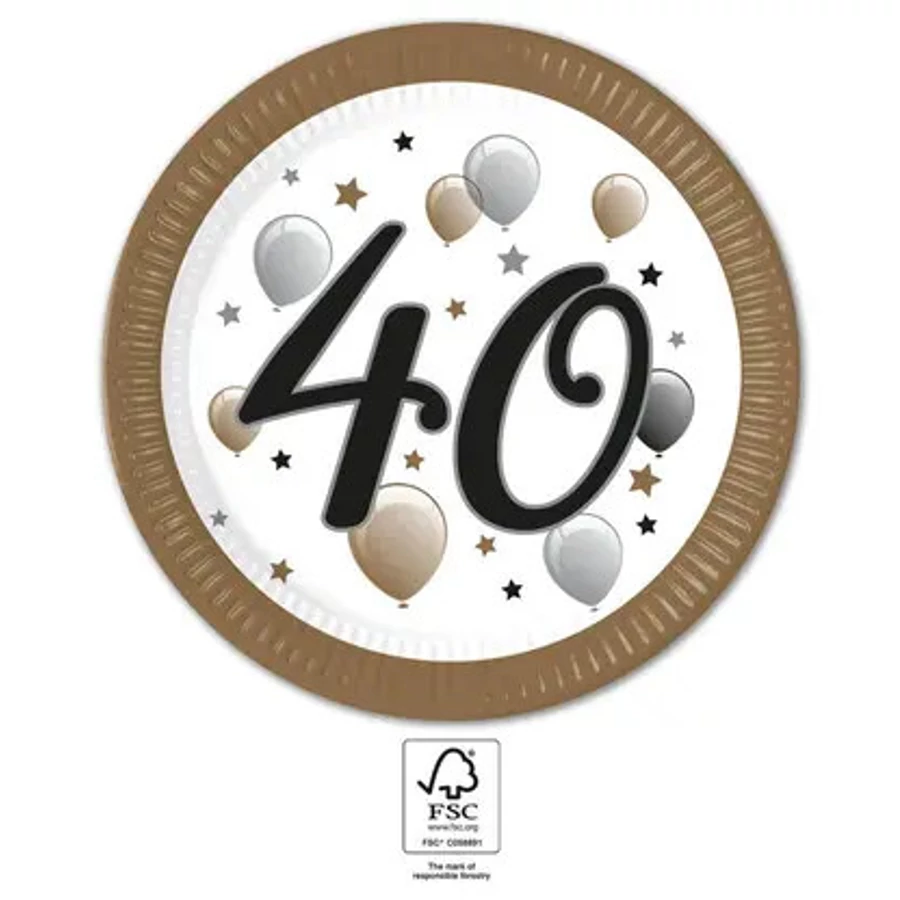 Happy Birthday 40 Milestone papírtányér 8 db-os 23 cm FSC
