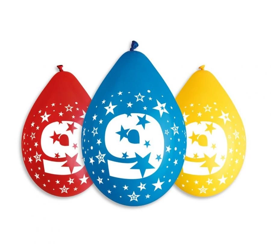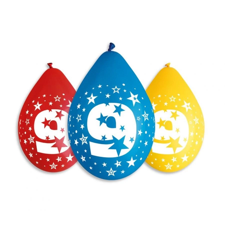 Happy Birthday 9 függő léggömb, lufi 5 db-os 12 inch (30 cm)