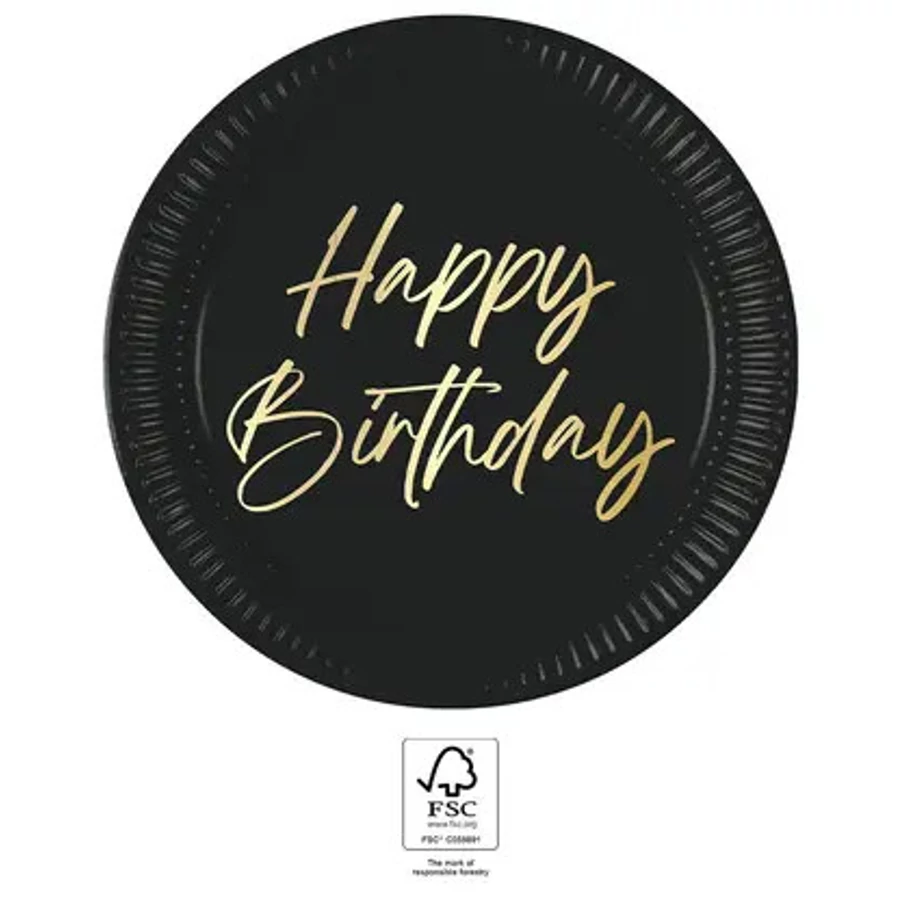 Happy Birthday Elegant papírtányér 8 db-os 23 cm FSC