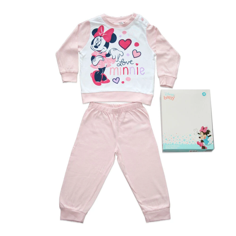 Minnie egér jersey pizsama kislányoknak 100% pamut alapanyagból. Kényelmes bőrbarát viselet. A termék díszdobozban kapható.