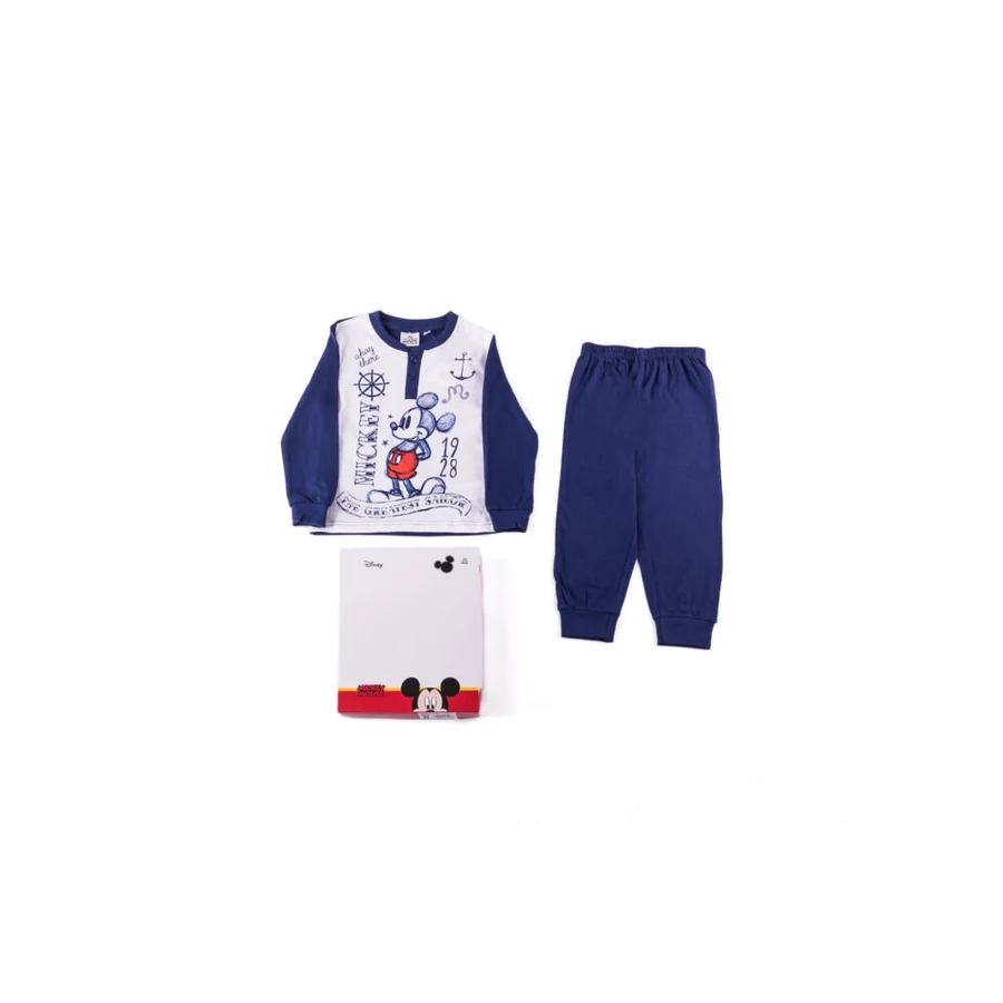 Hosszú vékony pamut gyerek pizsama - Mickey egér - 104 - sötétkék