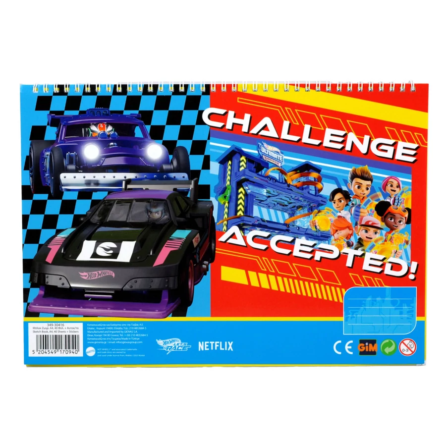 Hot Wheels spirál vázlatfüzet, 40 lapos