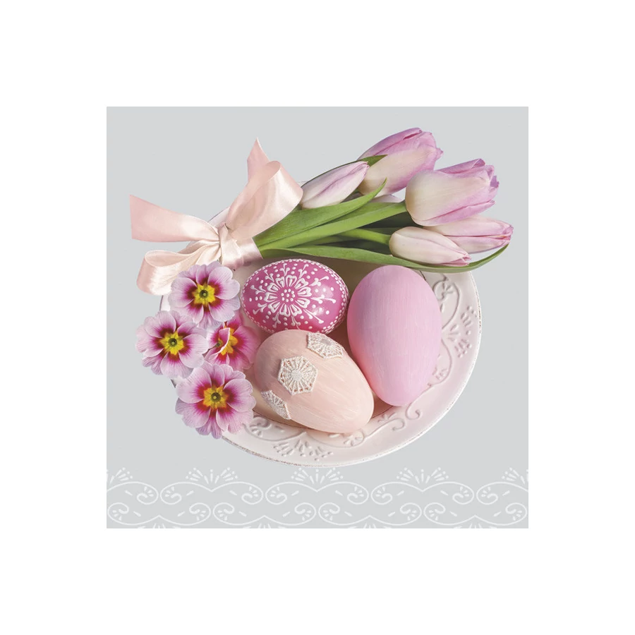 Húsvét Pink Tulips and Primroses szalvéta 20 db-os 33x33 cm