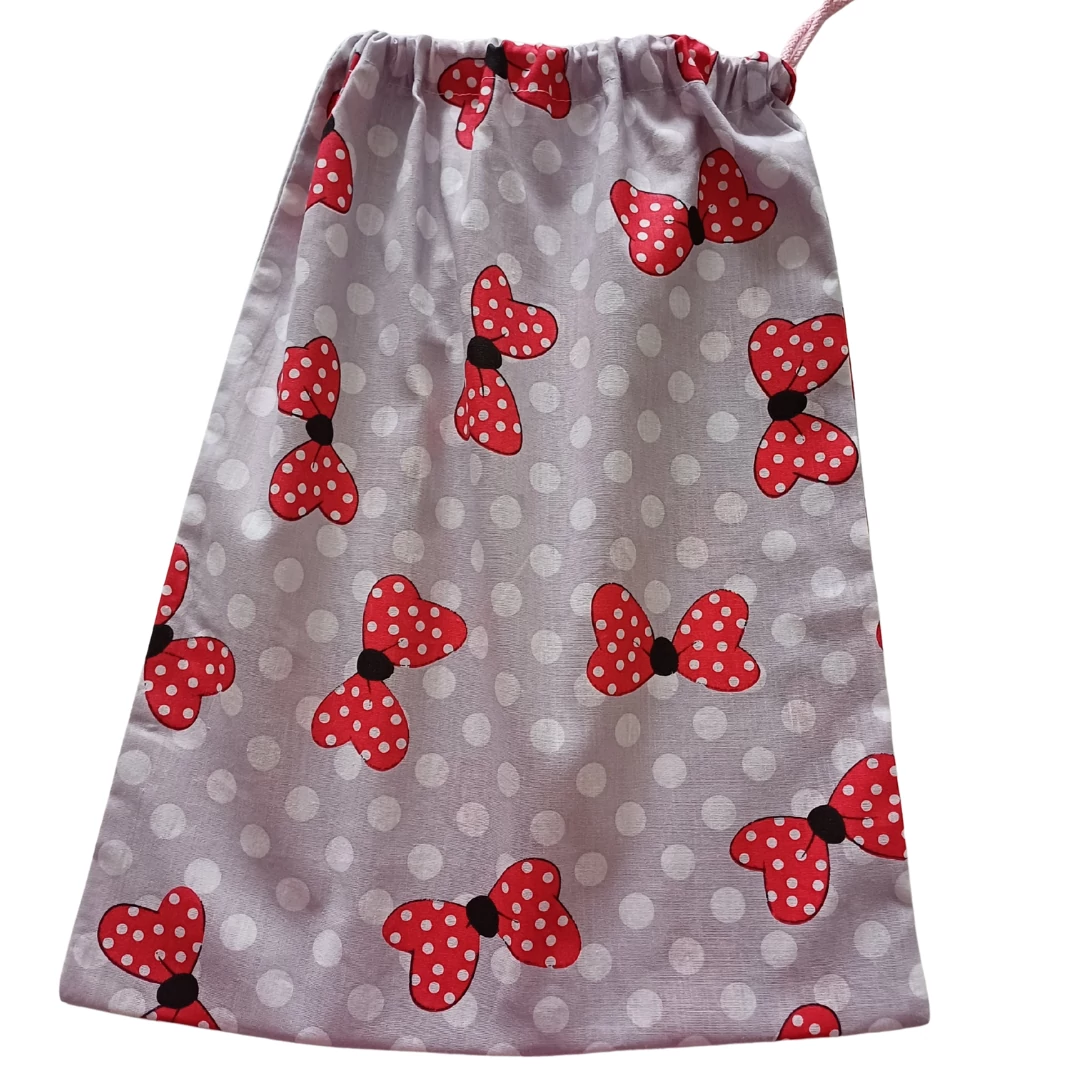Mintás pamutvászonból készül, így könnyen mosható, gyorsan száradó. Húzó zsinórral készült, könnyedén nyitható-zárható.