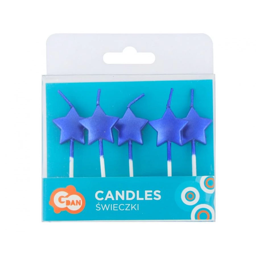 Metallic Blue Star, Kék csillag tortagyertya, gyertya szett 5 db-os