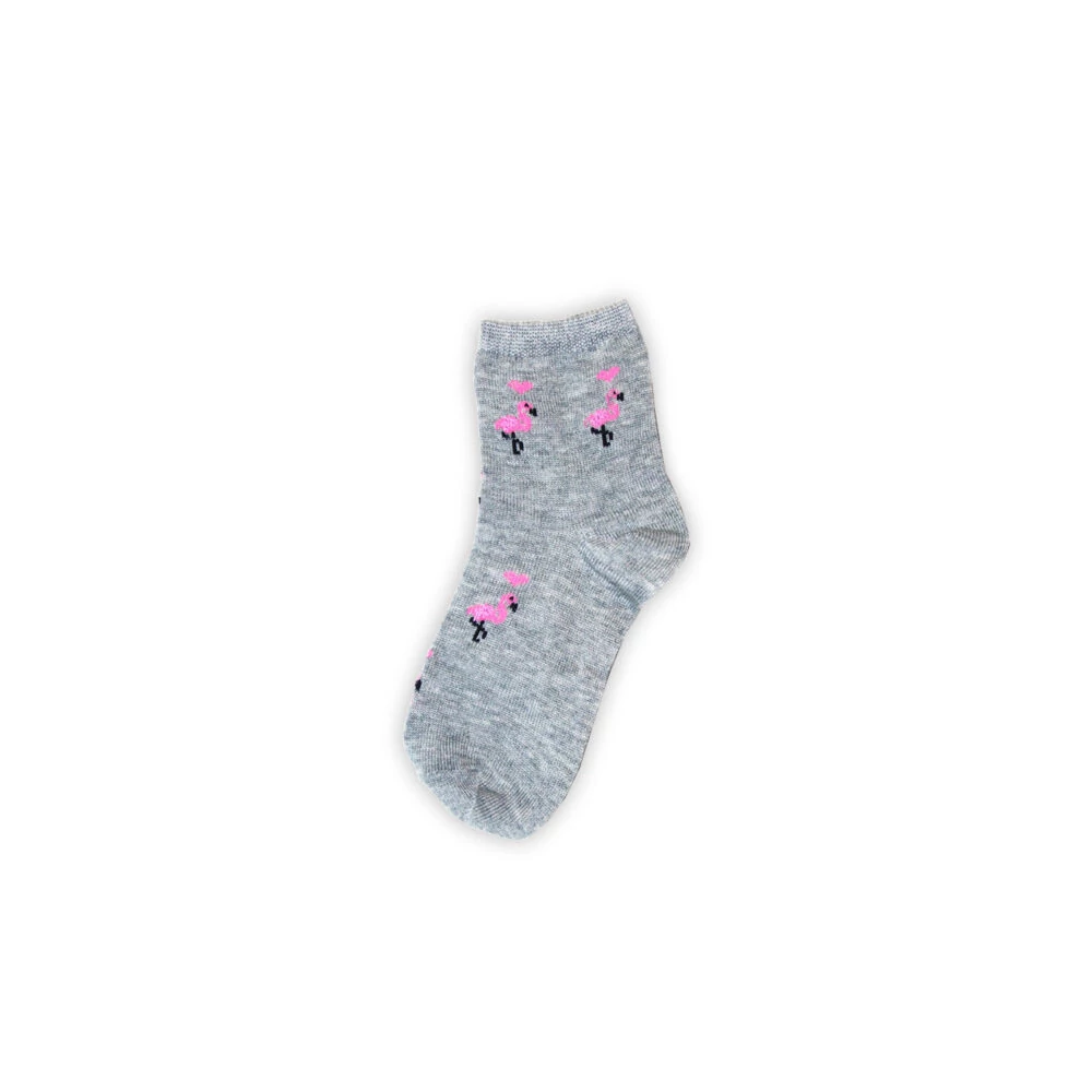 Puha, finomkötött szürke, bokáig érő, pamutkeverék zokni, elasztikus szárvéggel, beleszőtt divatos flamingó mintával. Kényelmes, nyári viselet.